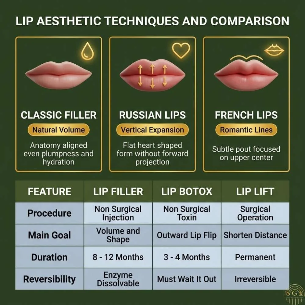 | Feature | Lip Filler (Hyaluronic Acid) | Lip Botox (Lip Flip) | Lip Lift (Surgical) |