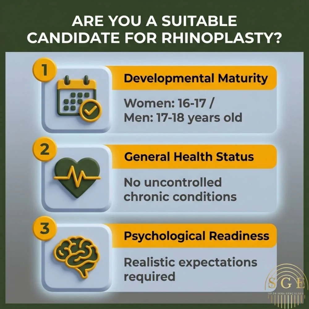 In order for a rhinoplasty operation to be performed safely, certain medical and physiological criteria must be met: